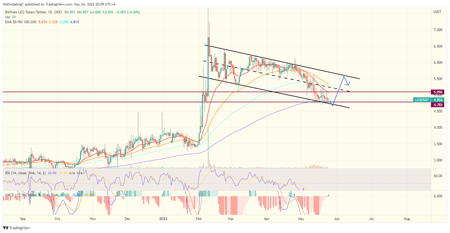 Yerevan (CoinChapter.com) – UNUS SED LEO, a cryptocurrency that describes itself as “the utility token at the heart of the iFinex ecosystem,” slid nearly 1% in the previous week, a moderate decline compared to the leading cryptos by market cap. As a result, LEO forayed into the top 20 and traded at $4.85 ahead of Monday’s New York session.