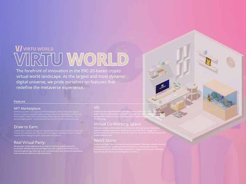 From customizable virtual workspaces to a Web3 Store, VirtuWorld offers a dynamic ecosystem empowering individuals to thrive in the metaverse.