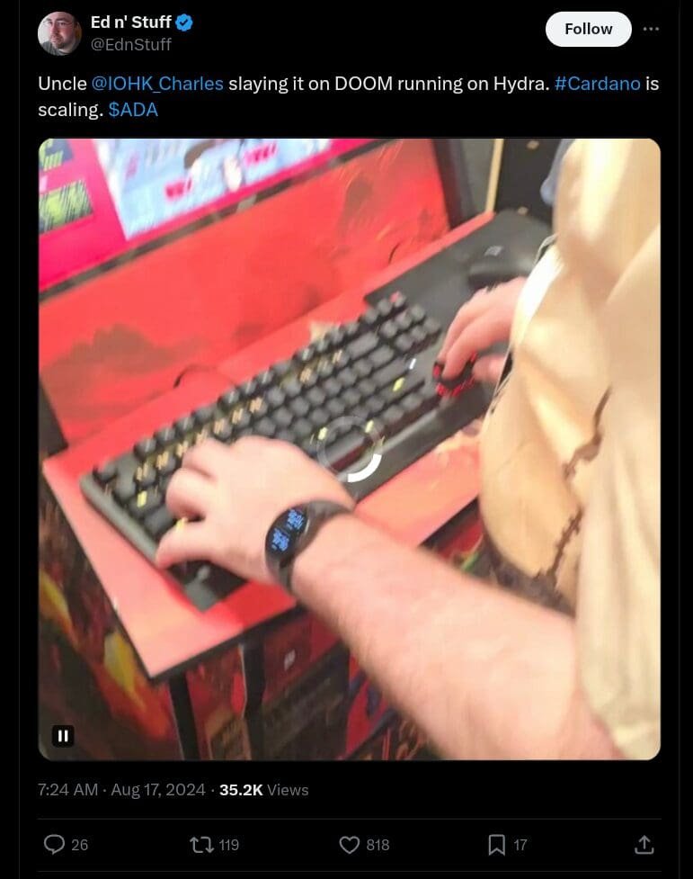 Another highlight of the Rare Evo 2024 event was the demonstration of Hydra, Cardano’s powerful scaling solution. The demo featured the classic game “Doom”, with every frame of the game being transmitted as a transaction on the Cardano (ADA) blockchain. This showcased Hydra’s potential to handle high-throughput, real-time applications.