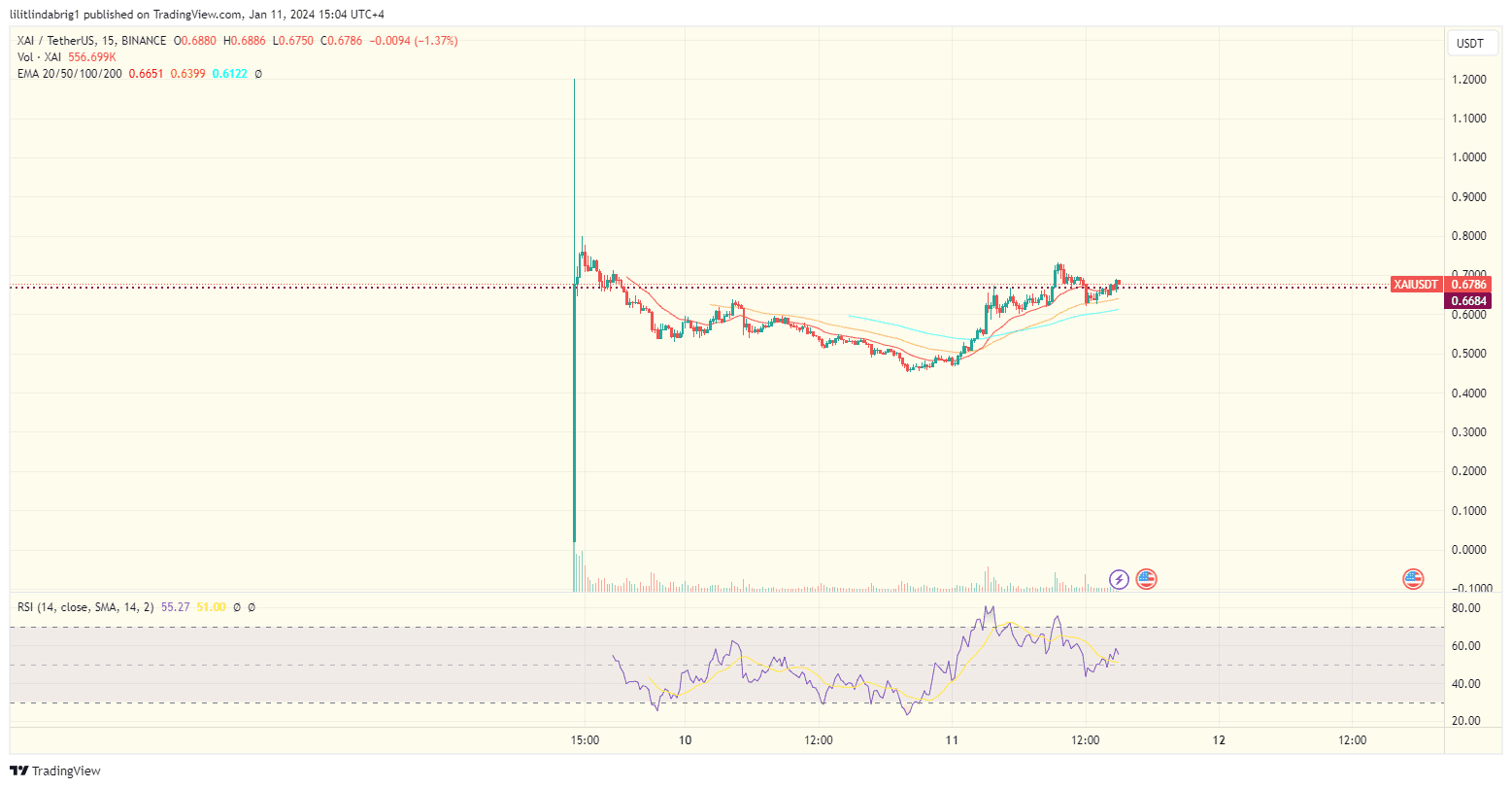 YEREVAN (CoinChapter.com) – Gaming XAI token jumped 25% to $0.66 on Jan 11, effectively paring the previous day’s losses. While the Xai Mainnet launch could be behind the uptrend, let’s take a look at the price action and on-chain metrics first.