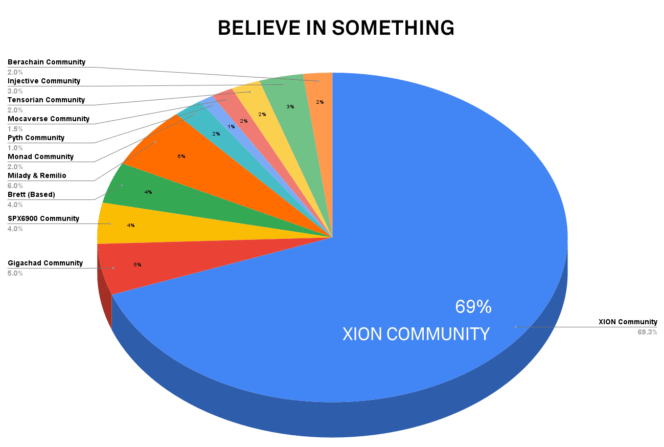 The “Believe In Something” airdrop, also known as the “First Spark,” targets contributors from more than ten ecosystems and communities. Approximately 69% of the tokens will go to active users, developers, and members of XION’s testnet and Discord community. This also includes participants in initiatives such as EarnOS, BlockX, and XionEverywhere, as well as Galxe campaigns.